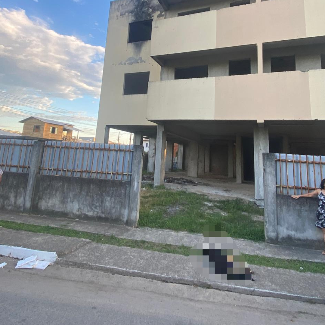 Ao chegar ao local, os policiais encontraram um cachorro de porte médio, sem raça definida e de cor preta, caído na calçada em frente à edificação. O animal já estava sem vida e havia diversos populares ao redor.