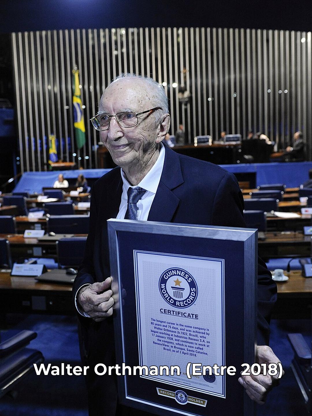 Em 2022, Walter Orthmann foi oficialmente reconhecido pelo Guinness World Records com o título de “carreira mais longa na mesma empresa” na categoria masculina.